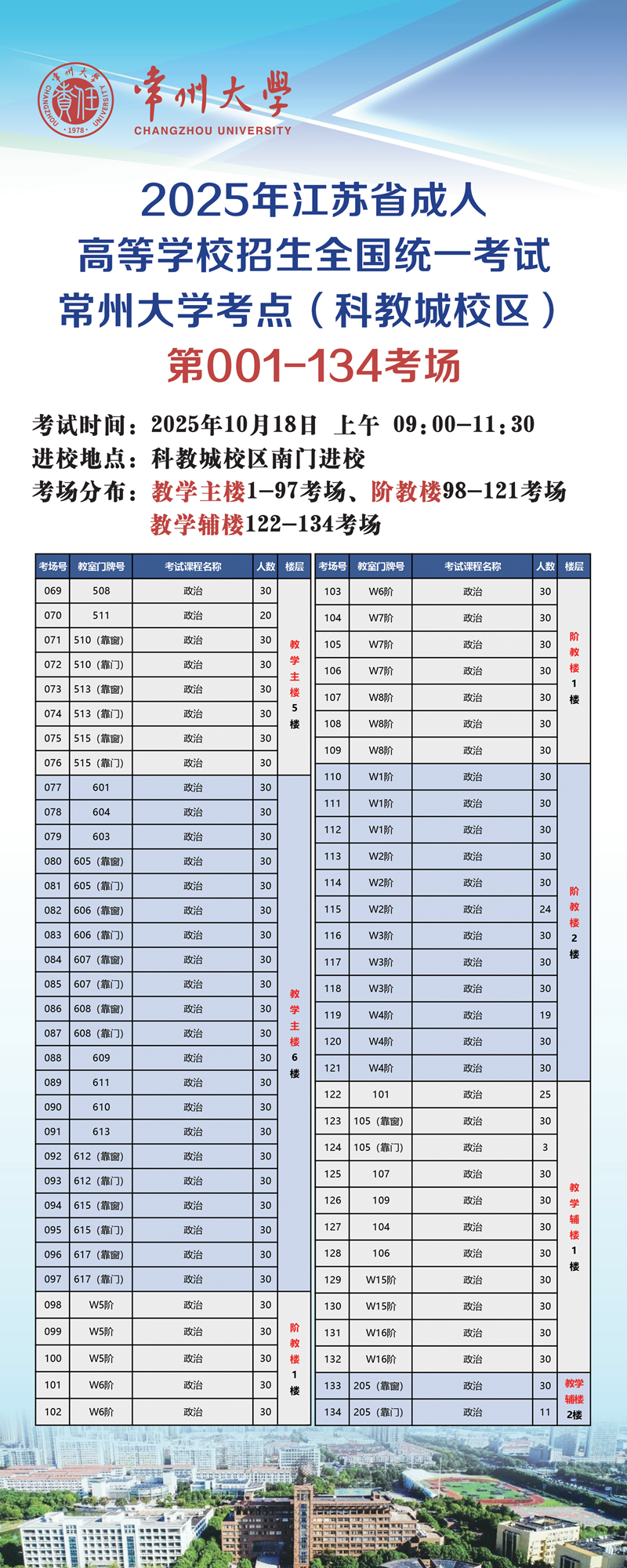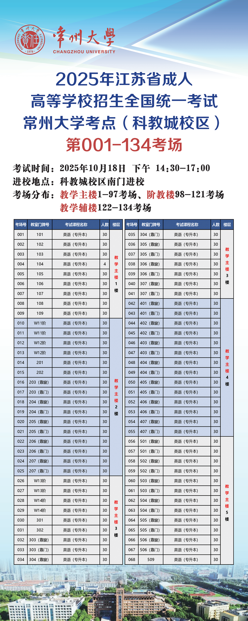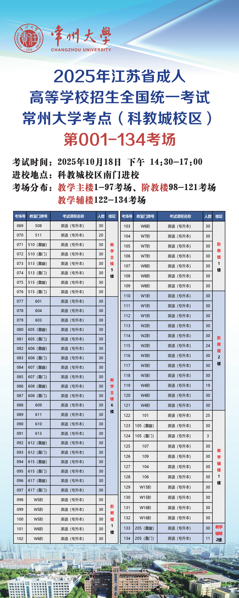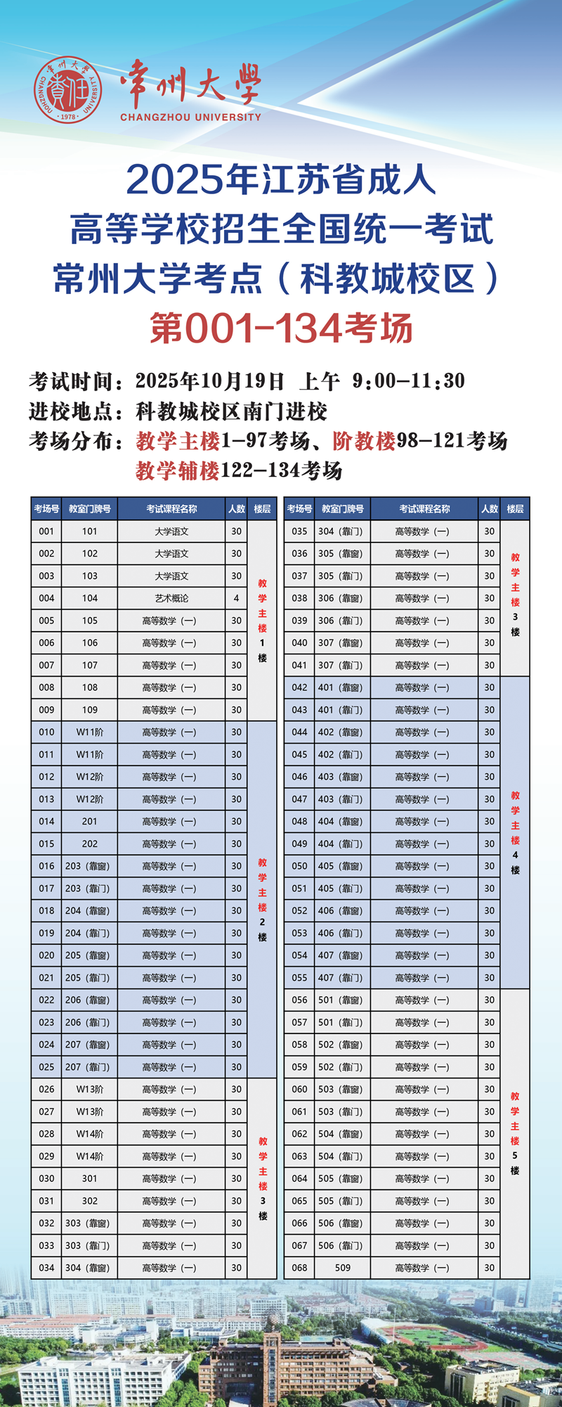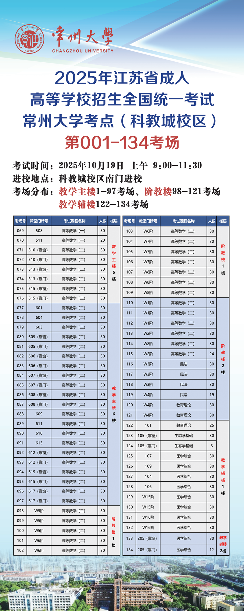 2025年江苏省成人高等学校招生全国统一考试常州大学考点考生须知(科教城校区)