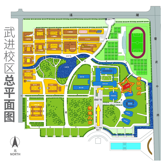 (1)所有考生一律从常州大学科教城校区西区南门(武进区香樟大道)进校,沿警戒线步行至文彬楼机房考场。