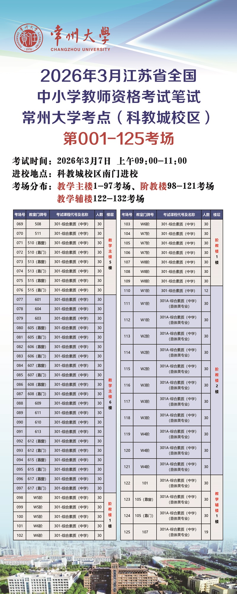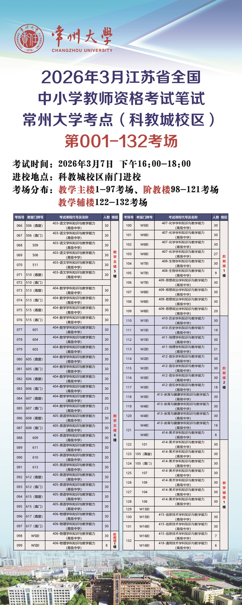 一、进校地点:常州大学科教城校区南门(位于武进区香樟大道),北门不设考生进校通道。