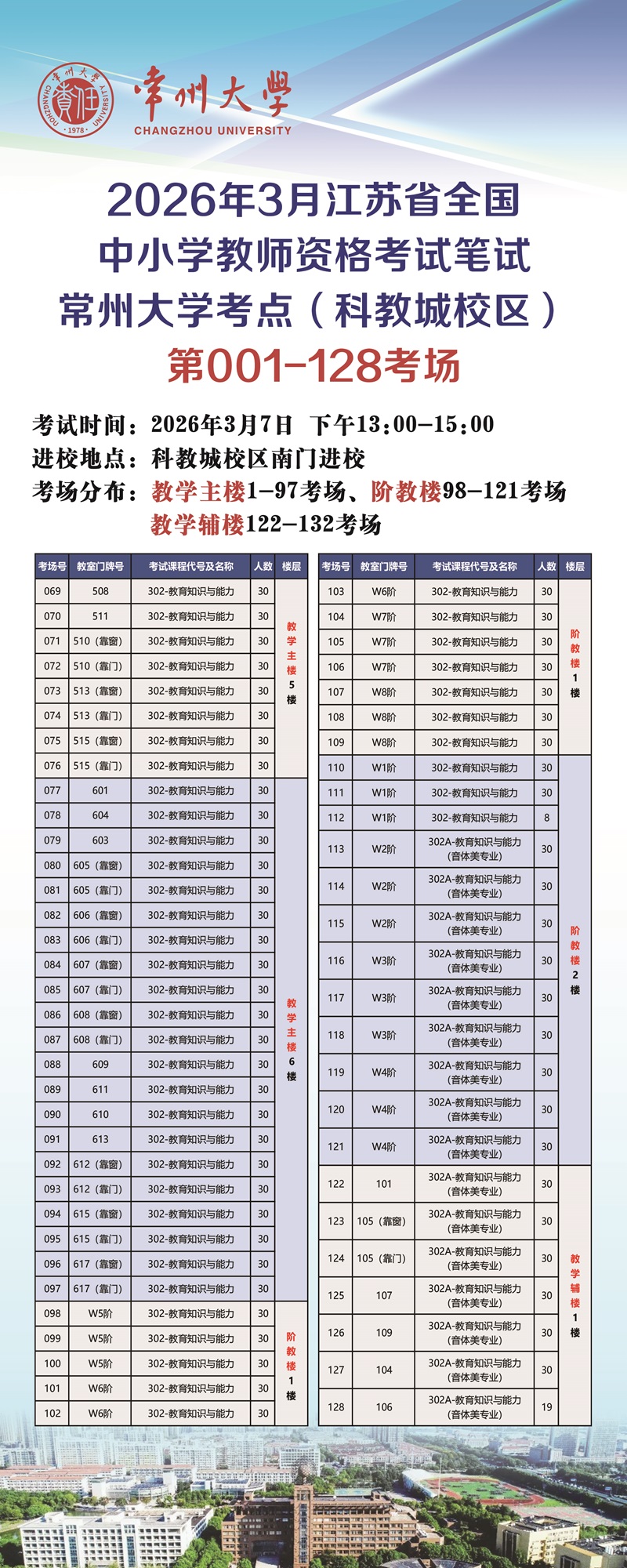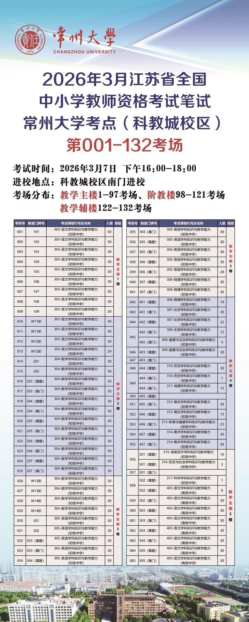 2026年3月江苏省全国中小学教师资格考试笔试(常州大学)考点 考生须知