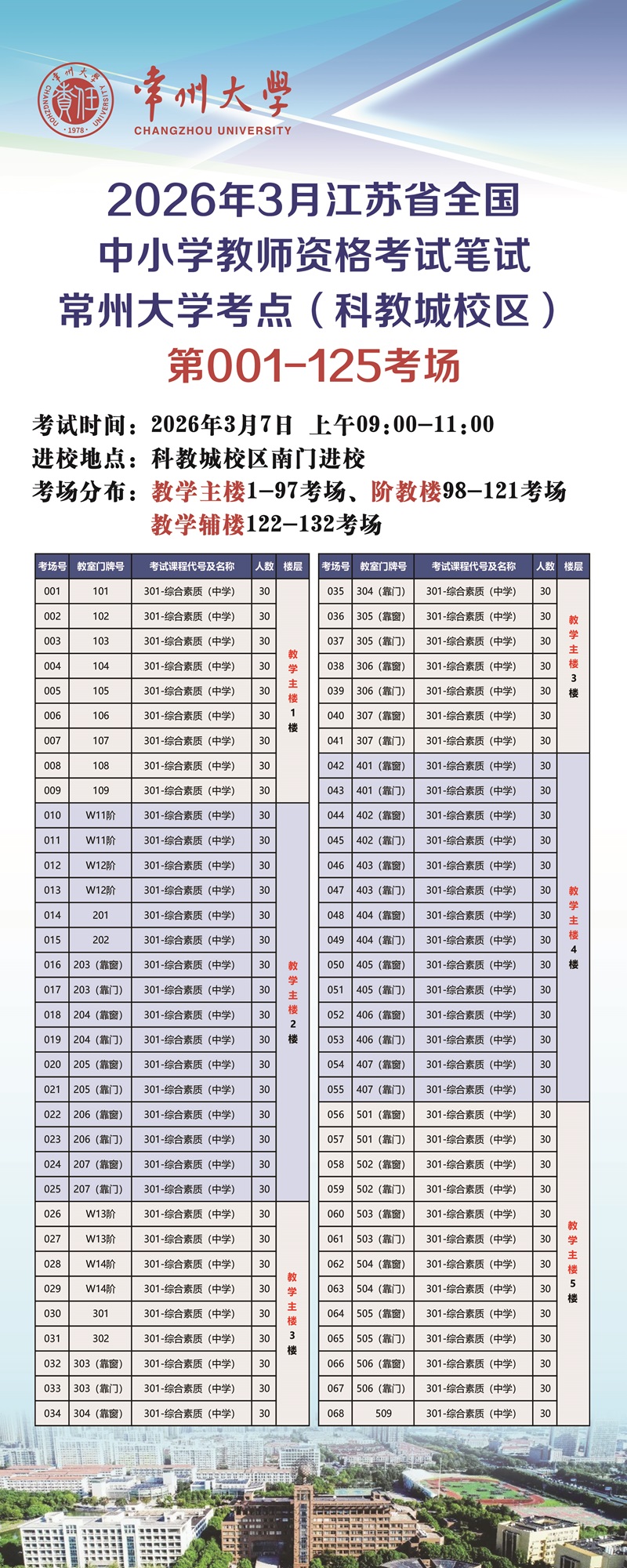 常州大学考点考场分布图